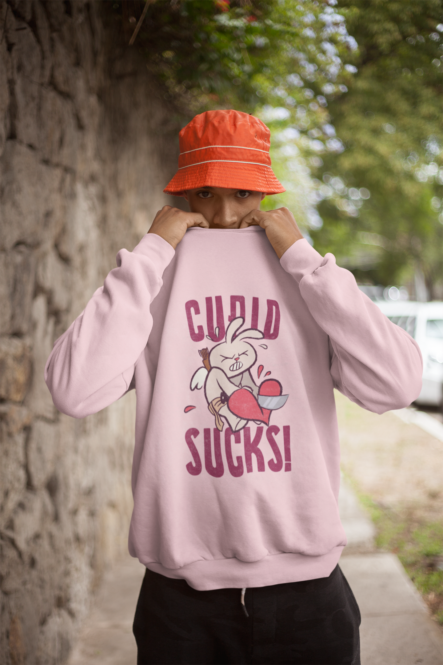 Pastel Pink Colored Regular-Fit Sweatshirt with print on the front.
