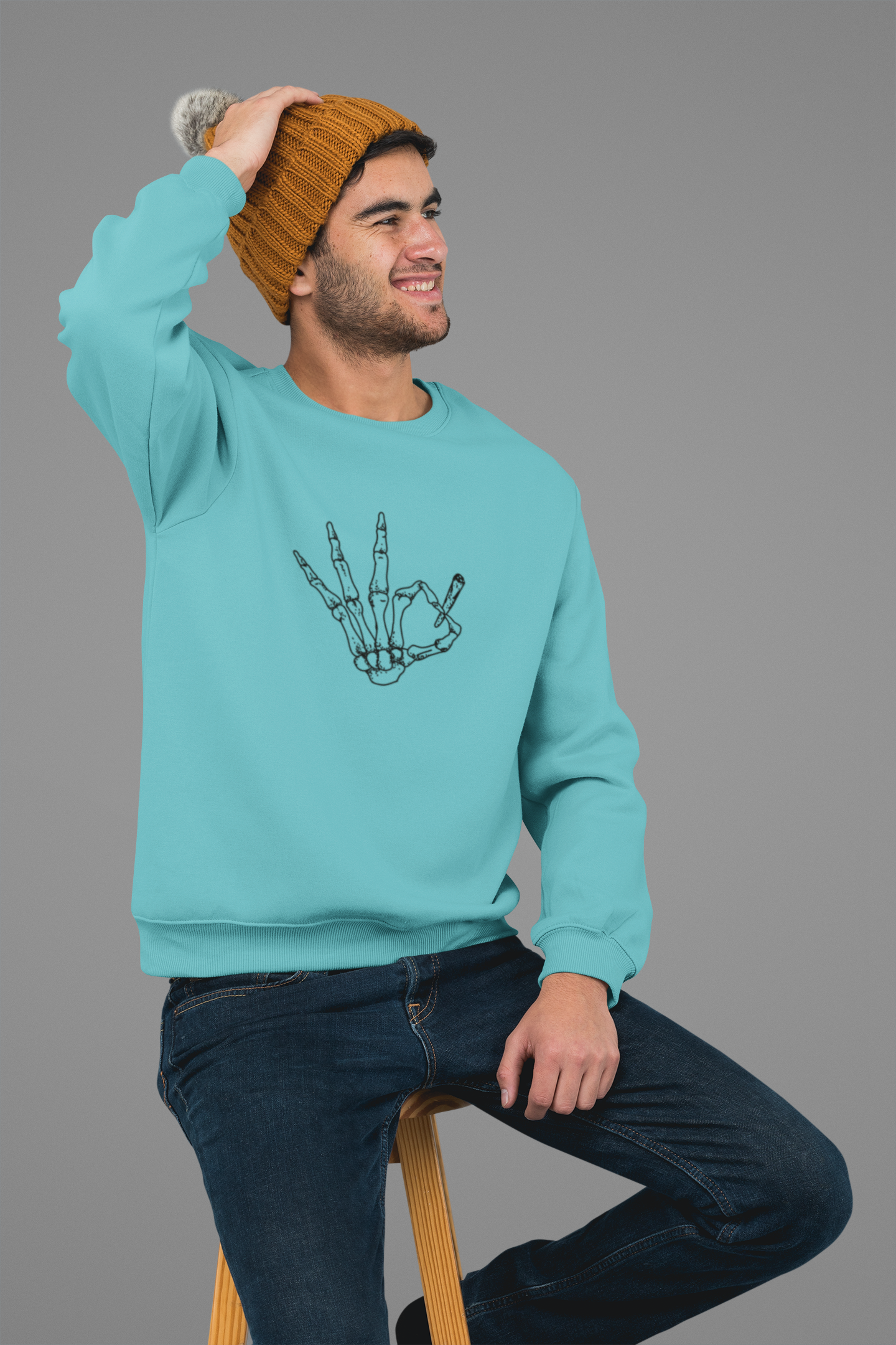 Sky Blue Colored Regular-Fit Sweatshirt with print on the front.
