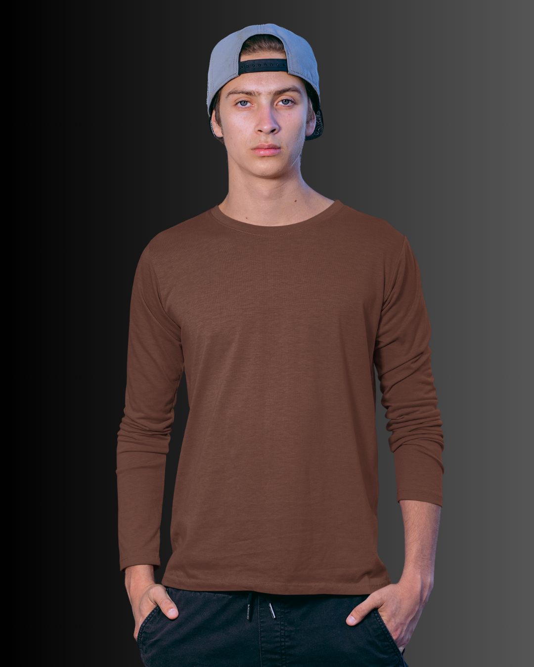 French Cotton Long Sleeve Crew Neck T-Shirt (Coffee Brown) #818