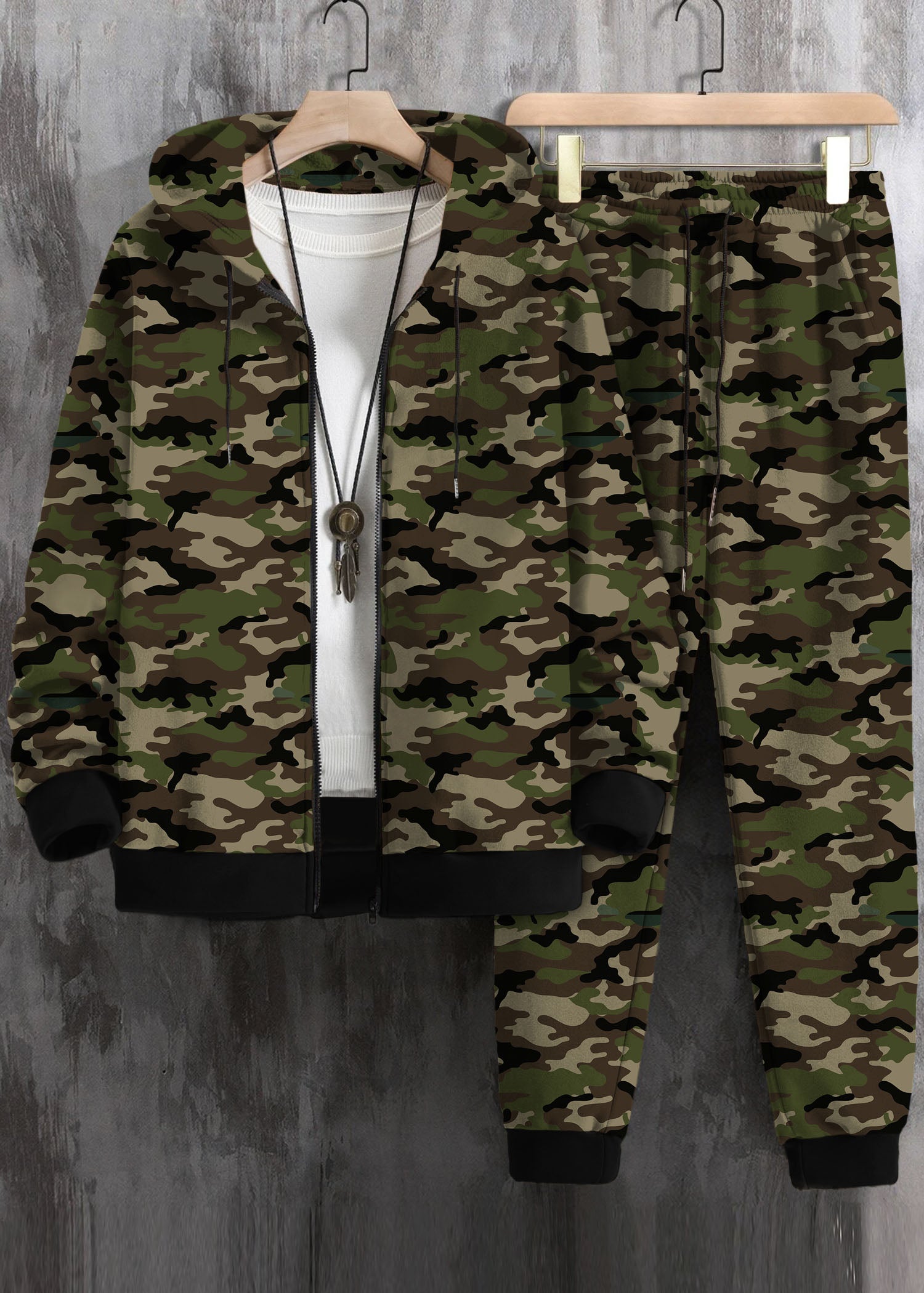 Men Zip Up Drawstring Hoodie & Sweatpants Co-ord Set Without Tee #877