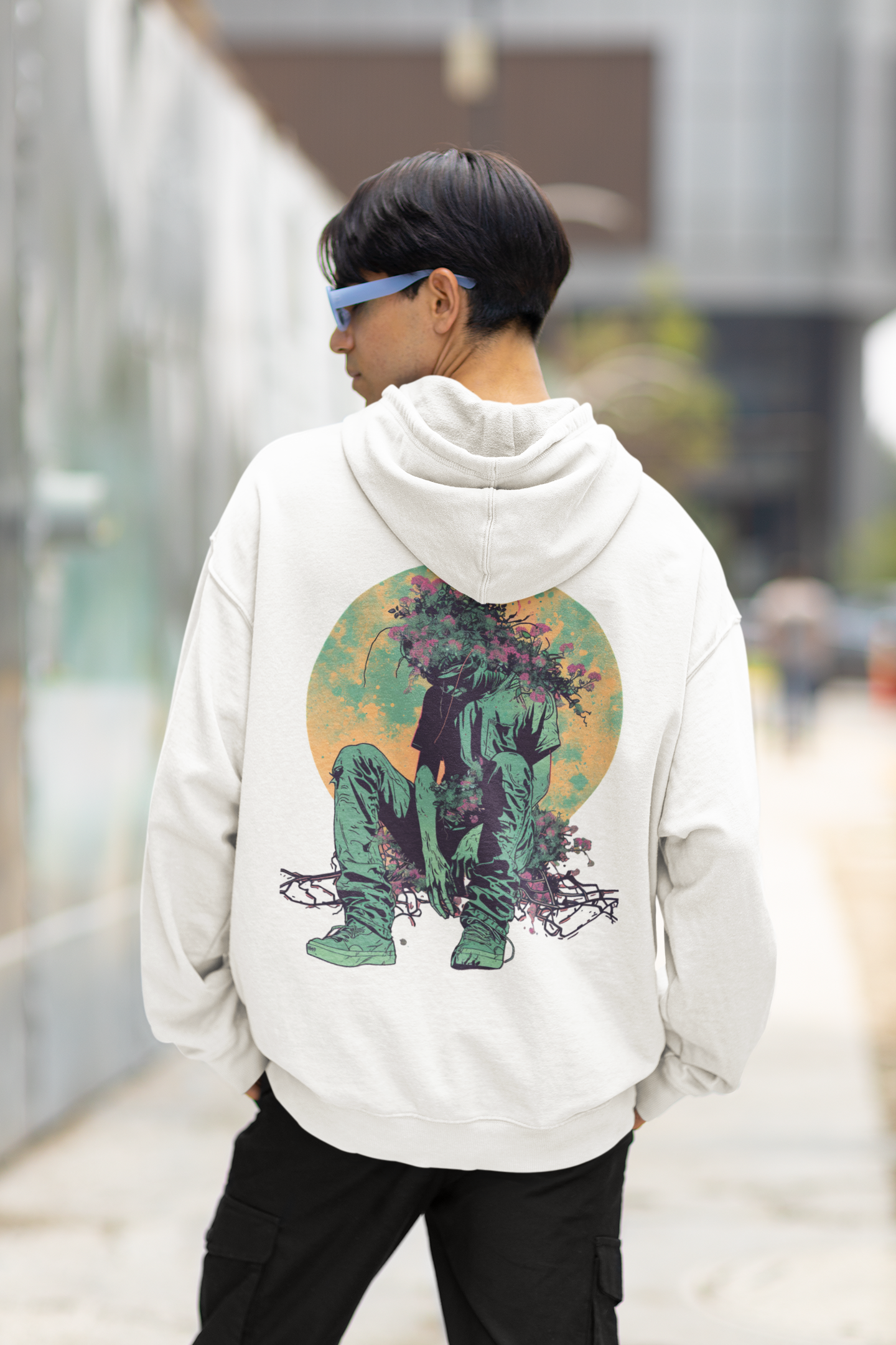 White Color Regular-Fit Hoodie with print on the back.