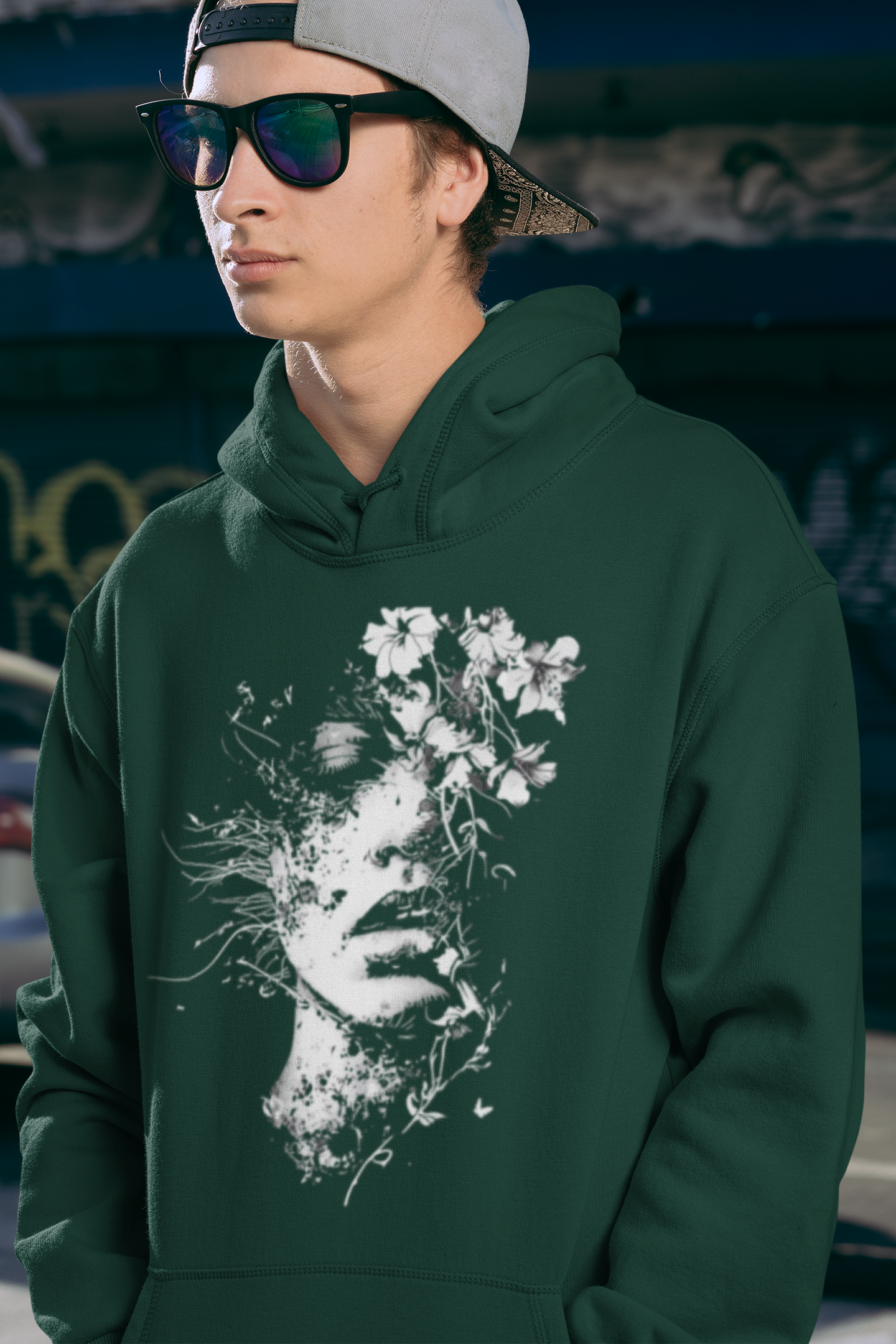 Dark Green Colored Regular-Fit Hoodie with print on the front.