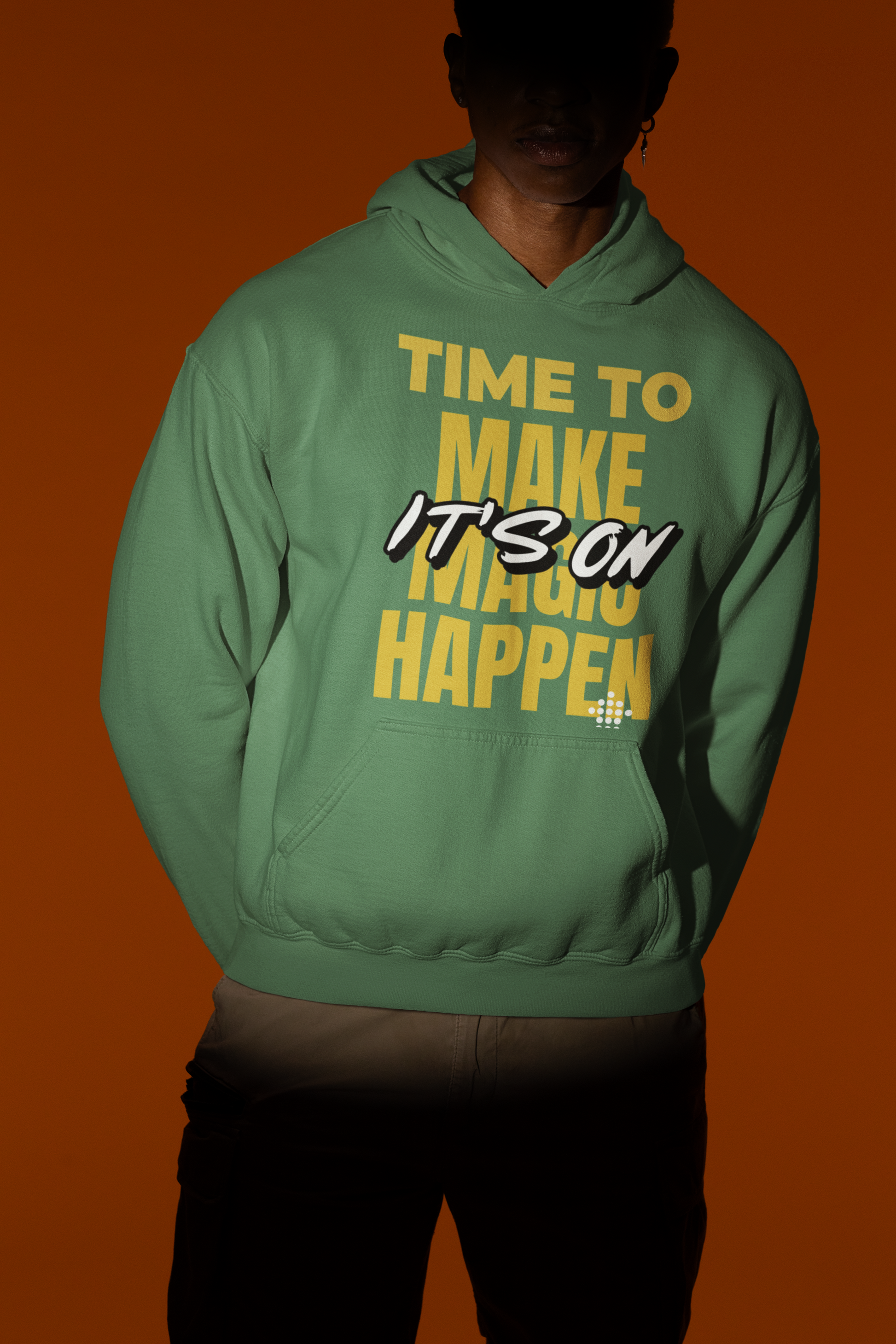 Dark Green Colored Regular-Fit Hoodie with print on the front.