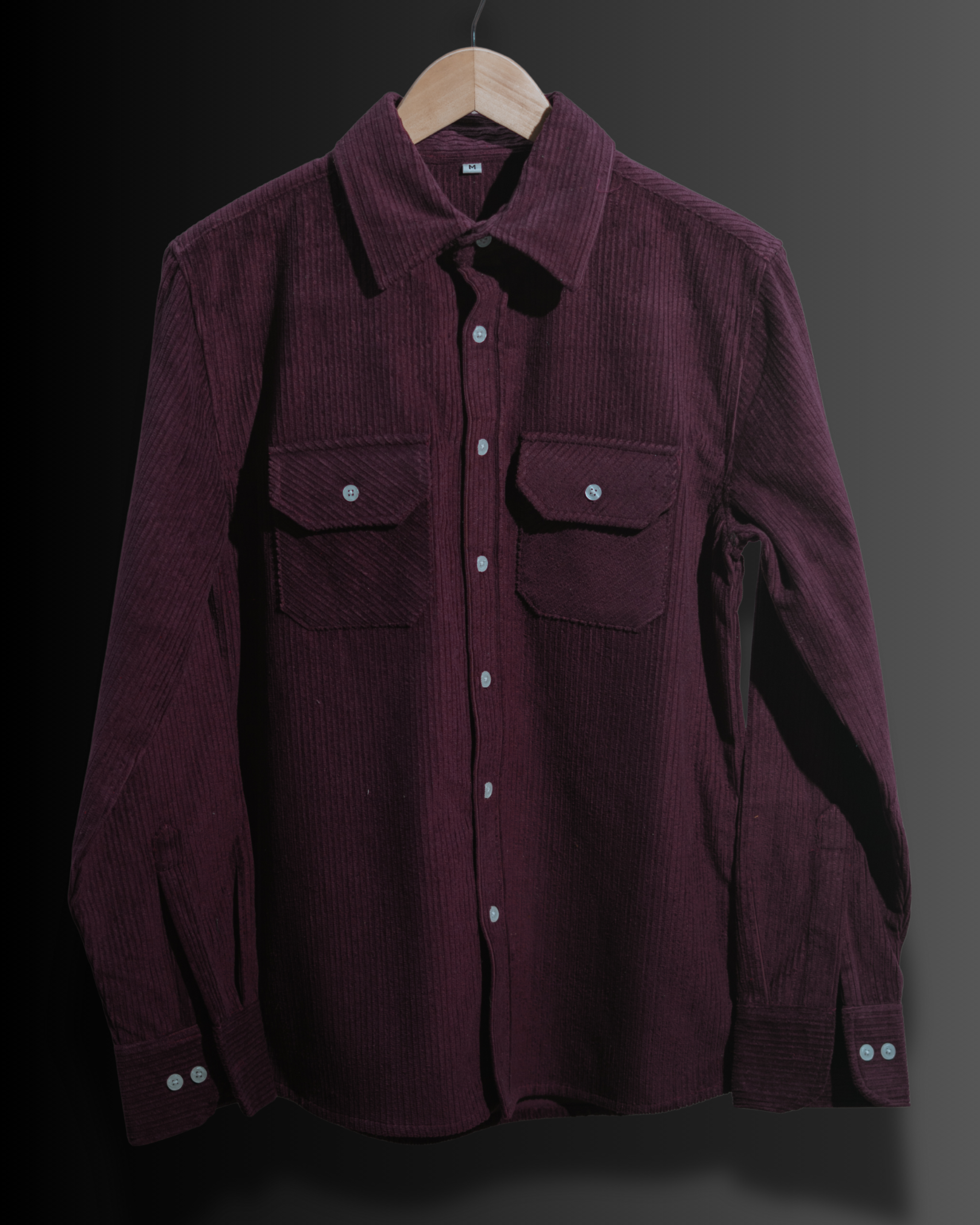 Men’s Wine Corduroy Shirt in Full Sleeves/Half Sleeves and Double Pockets.